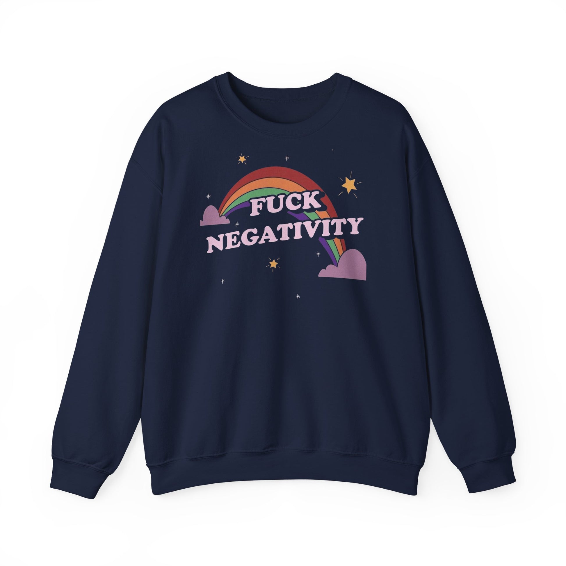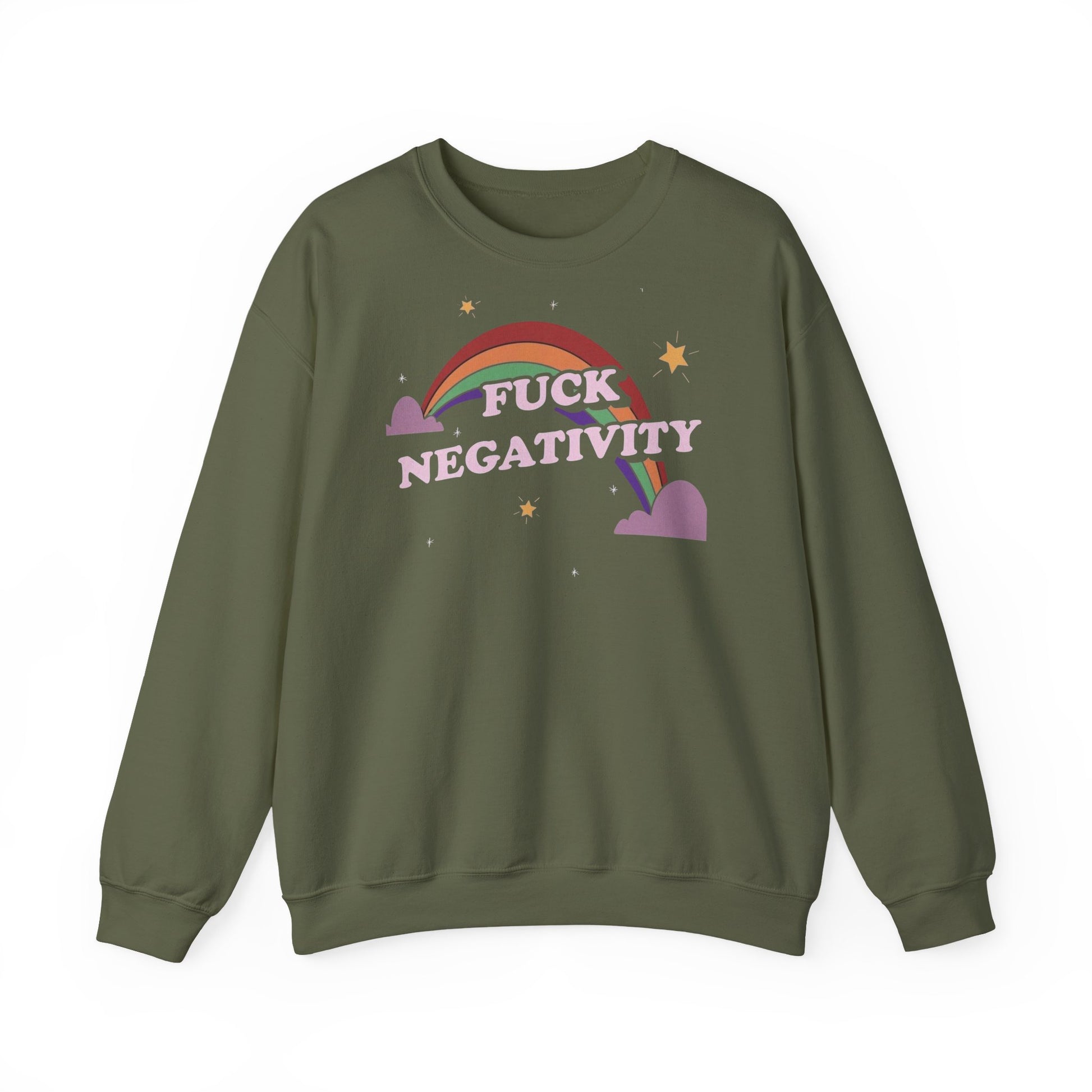 Crewneck Sweatshirt — "Fuck Negativity" Rainbow Anti-Negative Vibe