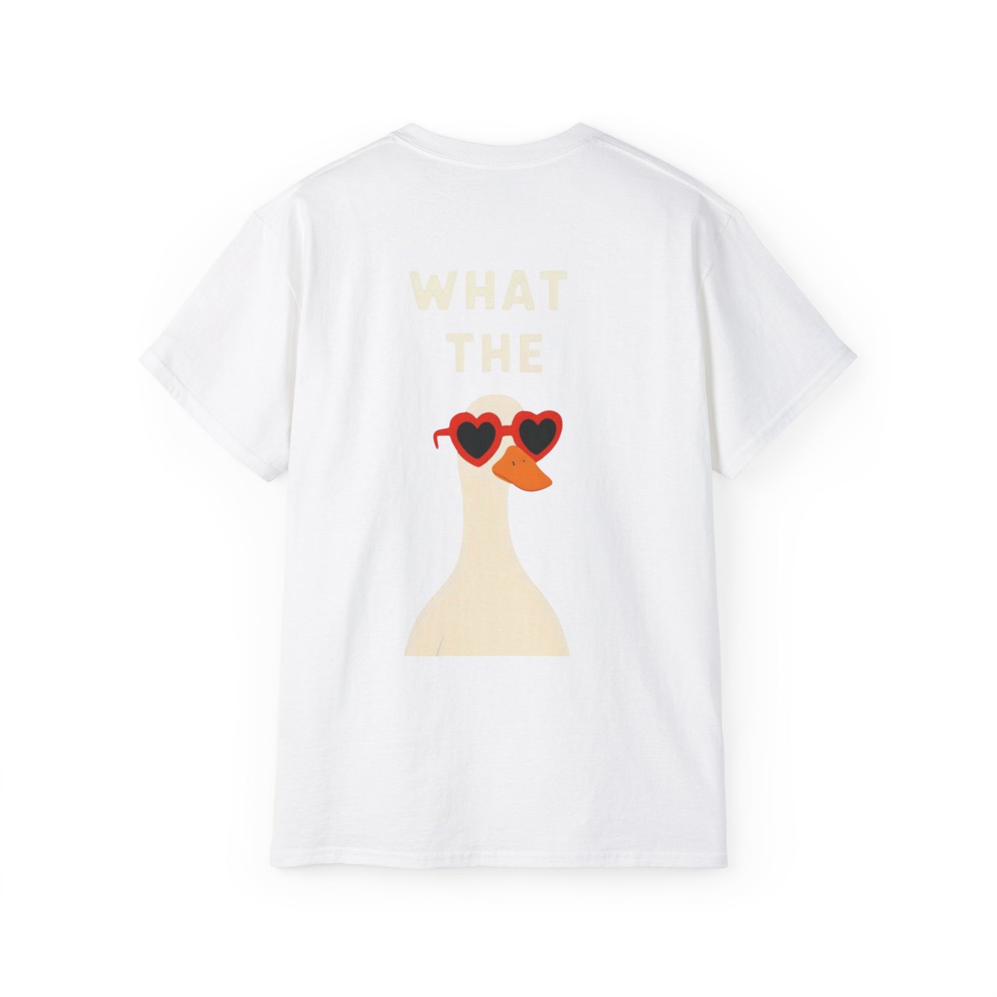 Graphic Unisex Tee — "What The" Duck with Heart Sunglasses T-Shirt