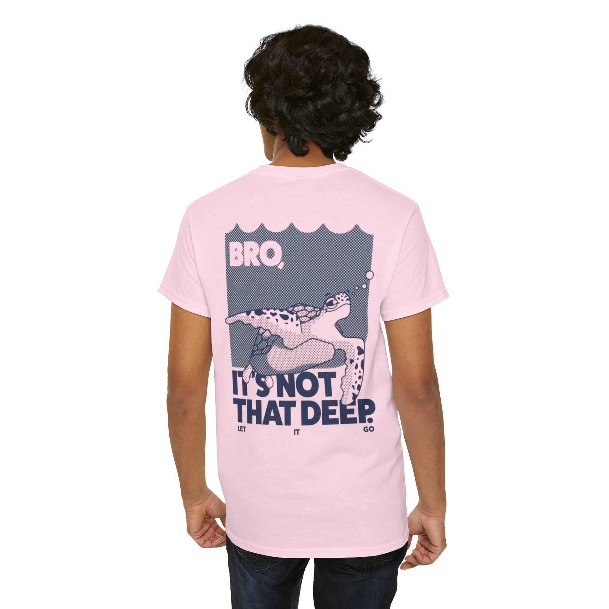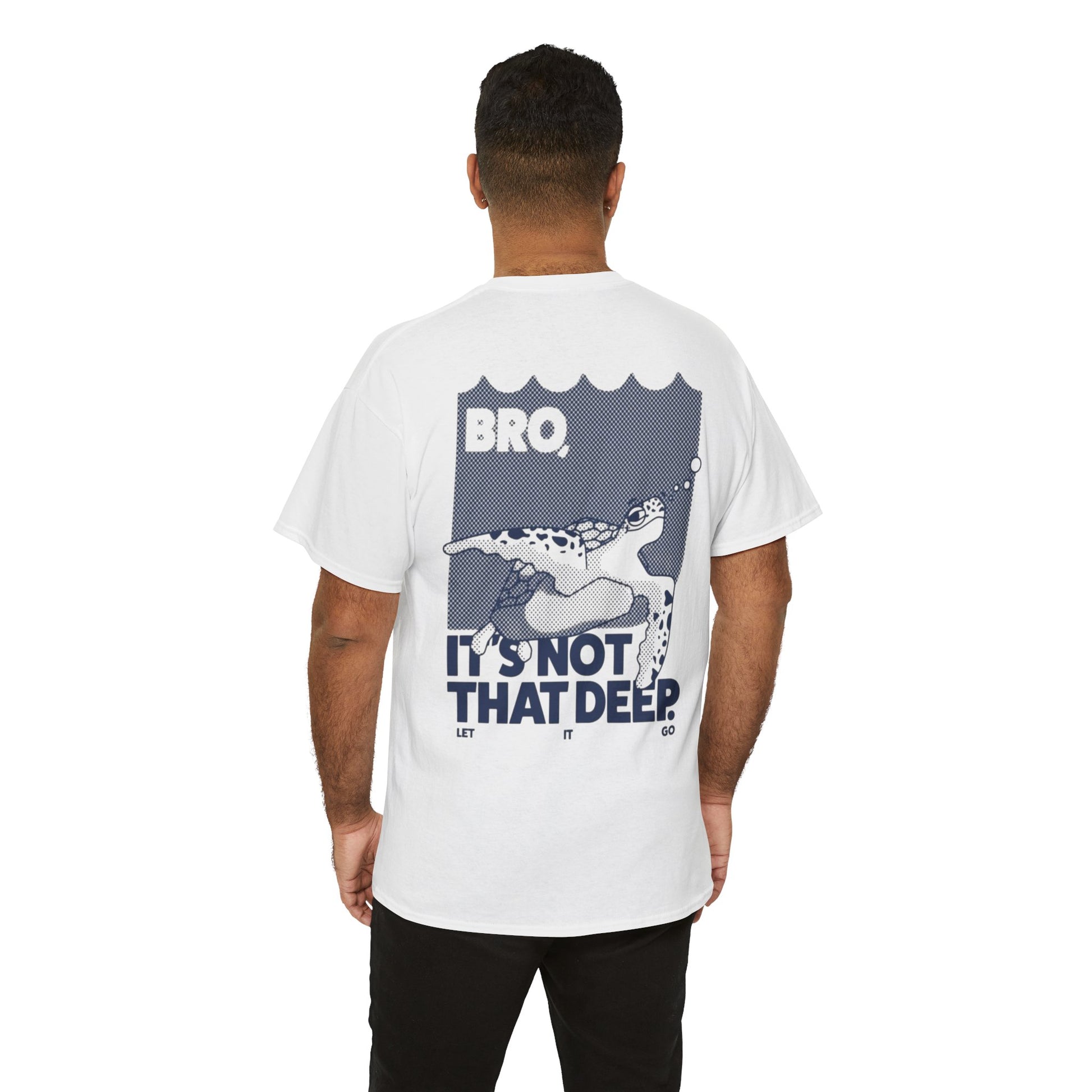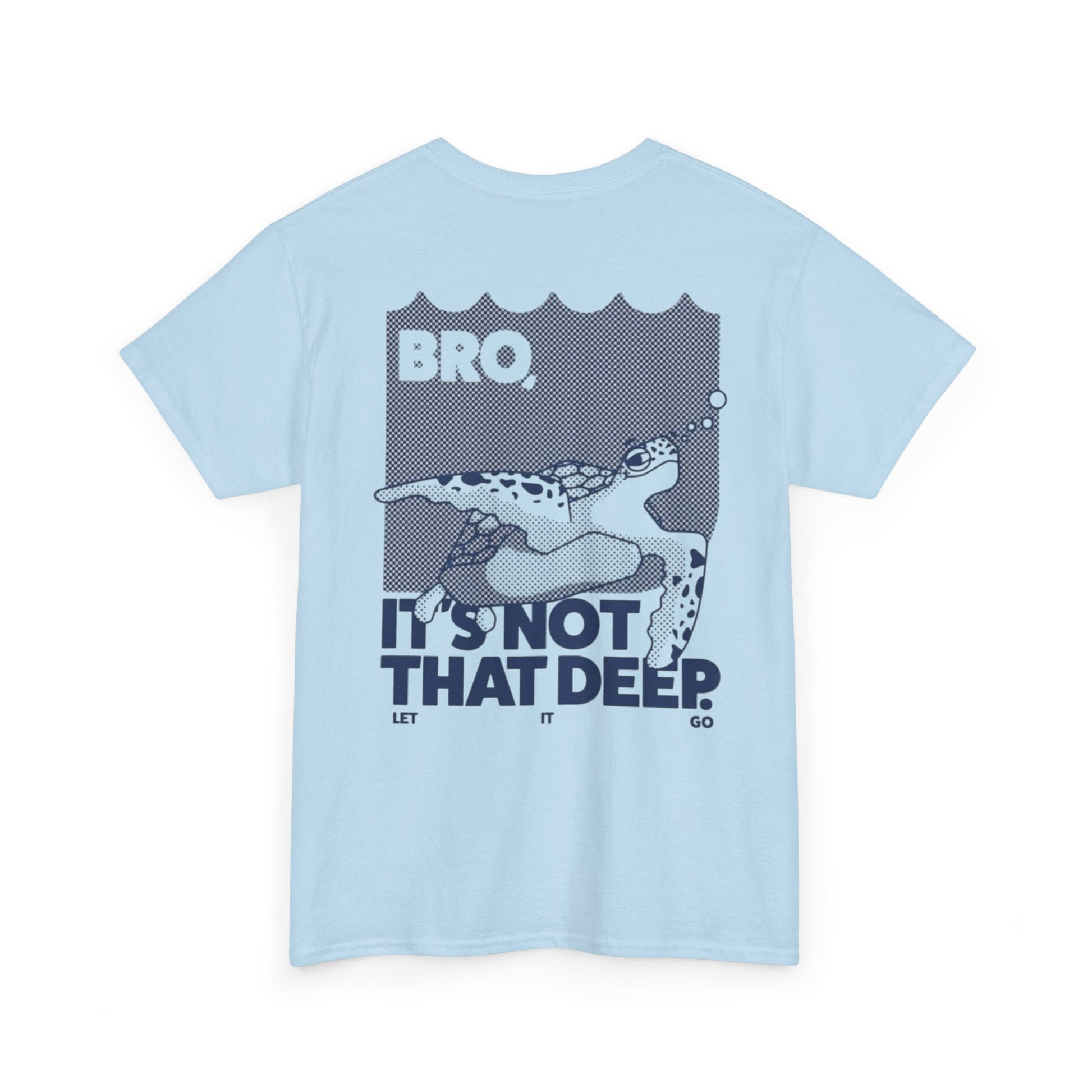 A fun and laid-back T-Shirt that says 'bro, it is not that deep'. Perfect for those who appreciate a sense of humor and sarcasm in their everyday wardrobe. This tee is ideal for casual wear and can be a great conversation starter. Relevant for birthdays, holidays, and everyday wear for adults.